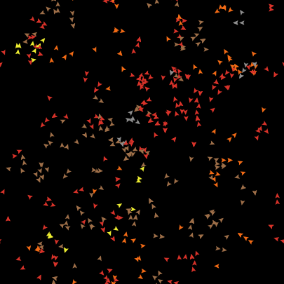 The model starts with a random distribution of colored turtles. They move by wiggling randomly across the world. Each turn, a turtle produces between 0 and 4 offspring. If the total number of turtles is greater than the original number, then turtles are randomly killed until the original number is restored. After enough turns, a color will gain a slight dominance. By statistical advantage, a dominant color becomes more likely to win the entire grid. However, because the process is random, there will usually be a series of dominant colors before one color finally wins. Equally important is the fact that a color can never come back once it dies out.