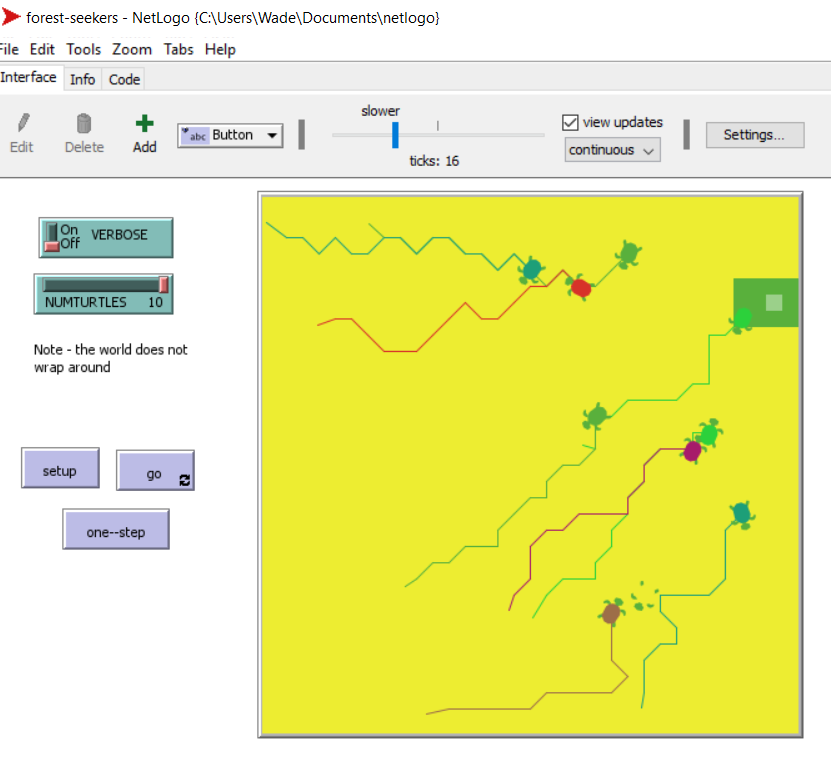 • Solves a stated requirement that the turtle not backtrack without requiring either turtles or patches to store lists of prior visits