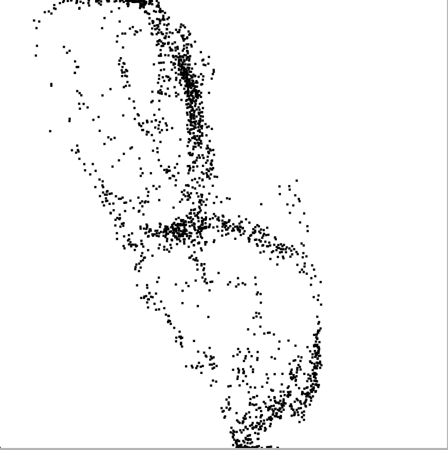 ;; Dancing with friends and enemies turtles-own [ friend enemy ] to setup clear-all ask patches [ set pcolor white ] create-turtles 1000 [ set shape "dot" set size 3 set color black setxy random-xcor random-ycor ;; choose a friend and an enemy set friend one-of other turtles set enemy one-of other turtles ] reset-ticks end to go ask turtles [ facexy 0 0 fd towards-center-floor face friend fd towards-friend face enemy fd -1 * away-from-enemy ;; change friends and enemies with some probability if random 1000 < 1 [ set friend one-of other turtles set enemy one-of other turtles ] ] tick end