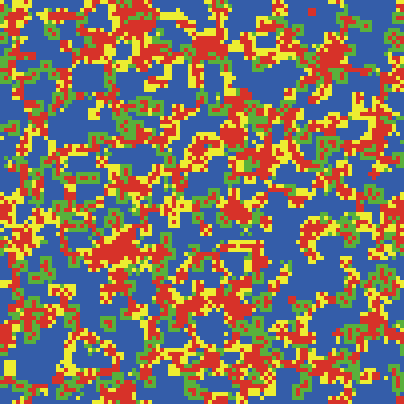 If a patch is yellow, then the patch defected in the previous round but cooperated in the current round.