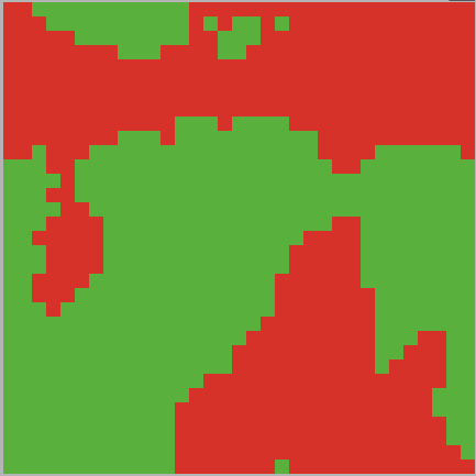 Each patch corresponds to a political agent, that must decide in a political negotiation game to join one of two political consensus groups.