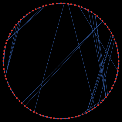 NUMBEROFNODES is the amount of nodes we want in the network. P is a baseline propensity for an edge (i,j) to exist (default p=1*10^(-10)). The actual value of p is not important so long as it is small enough that no random edges can be expected for ALFA=0 (i.e. p << 2 / n(n-1)). K is the average degree of a graph. ALFA is a tunable parameter 0 <= ALFA <= +Inf.