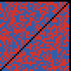 Each agent has a list of opinions about herself and other agents, ranging from -1 to +1. In this version, the parameter "condition" establishes the potential partners of each agent: global = all agents; local = agents within "influence_range"; and "small worlds" (see below).