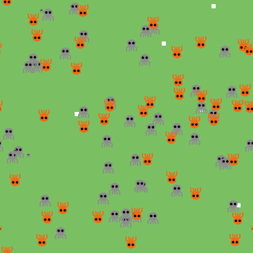The life cycle of the organisms encompasses tree distinct stages: egg, nymph and adult. Egg clusters are represented as white patches in the terrain. In the egg phase specimens stay in their patch and receive energy from the parents as long as they 'choose' to feed them. When hatch-age is reached eggs hatch and nymphs are free to leave. Nymphs look just like adult specimens just smaller. They can move but can't reproduce. When organisms come to adult-age they grow bigger and are ready to reproduce.